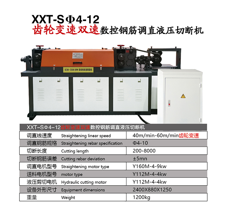 XXT-Sφ4-12齿轮变速双速数控钢筋调直液压切断机